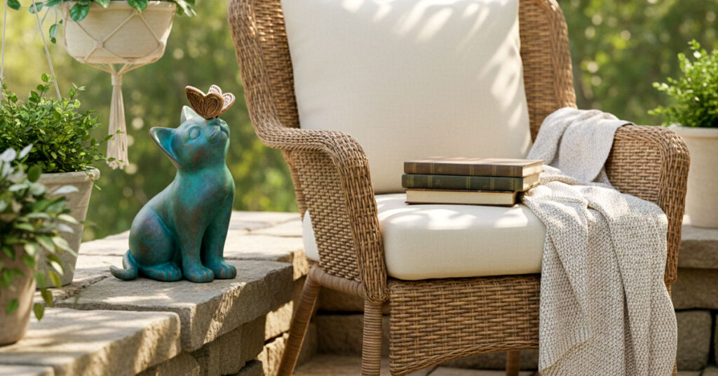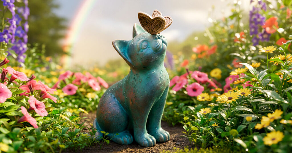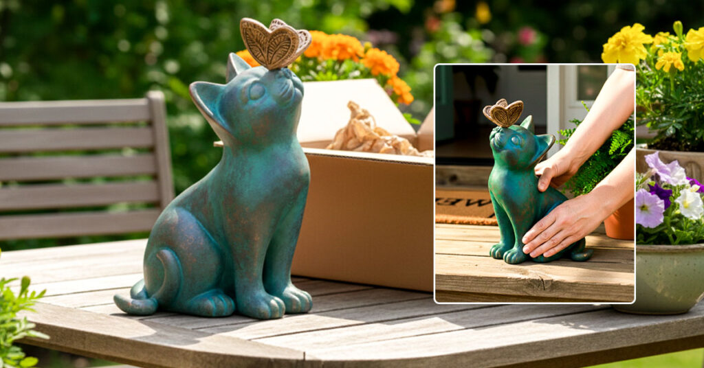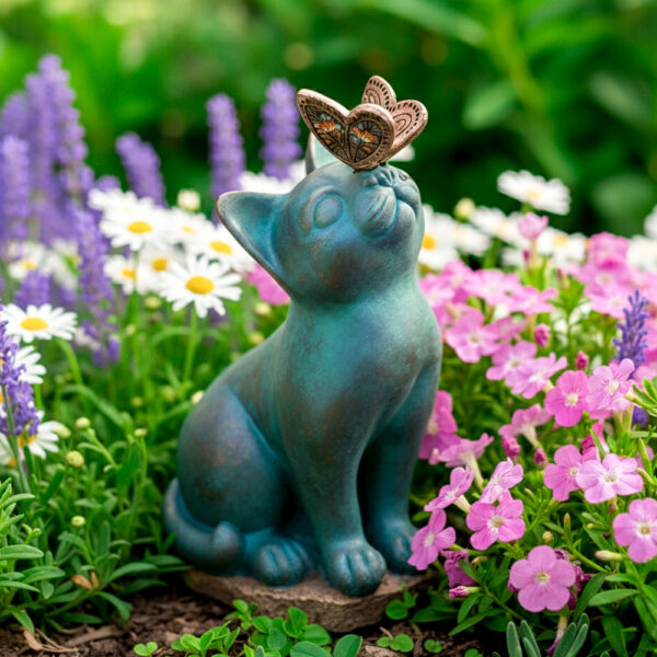 Spring showers, summer storms, autumn drizzle—bring them on. The protective finish seals in those gorgeous painted hues so they stay bright and beautiful season after season. You won’t see fading, peeling, or that sad washed-out look that ruins so many garden decorations. This little cat and butterfly duo keeps its charm whether it’s sunny, stormy, or somewhere in between. True outdoor resilience that looks this good is rare.