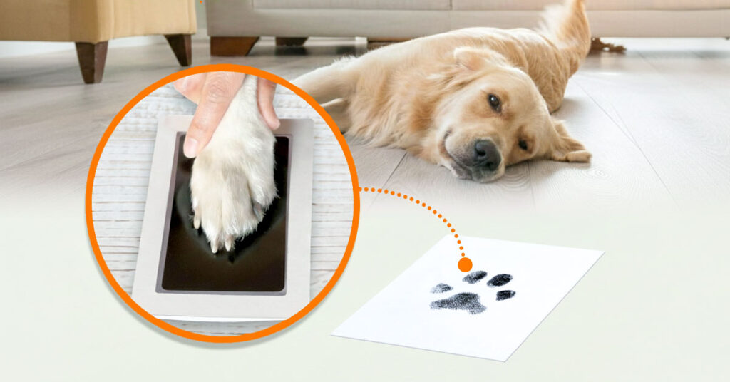 Yes, give the paw a quick wipe before making the print. You want the ink to transfer cleanly onto the paper, and dirt or moisture can interfere with that. Just use a damp cloth to clean off any debris and make sure the paw is completely dry before pressing it onto the pad. Think of it like putting a stamp on paper—you want a clean surface for the best impression.