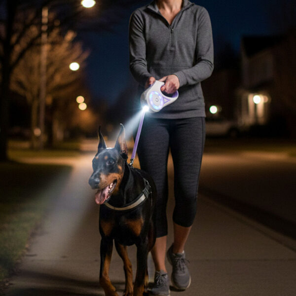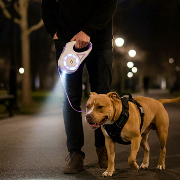 Start by turning on just the halo lights during a daytime walk so your dog can see them without associating them with the scary nighttime environment. Most dogs don’t react to the lights at all since they’re behind them and focused on what’s ahead. If your dog is particularly sensitive, let them sniff the leash while it’s lit up indoors first. The lights don’t make noise or sudden movements, so nervous dogs typically adjust within one or two walks.