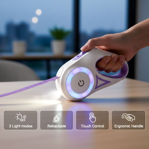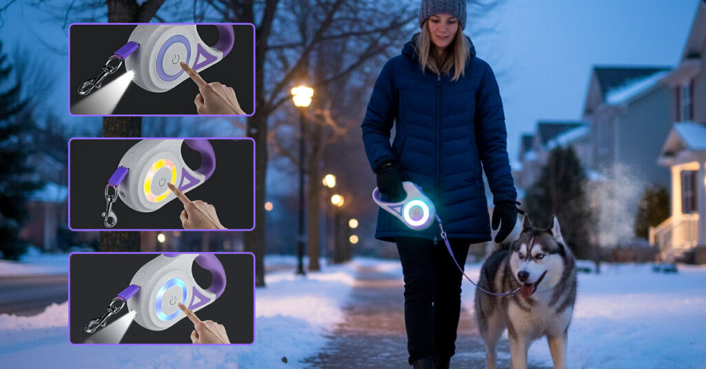 No fumbling with tiny buttons while your dog is pulling toward a squirrel. The touch-sensitive control responds instantly to a simple tap—switch from spotlight only, to halo only, to both lights together. It’s the kind of intuitive design that feels natural from the first walk, even when you’re wearing gloves or your hands are freezing.