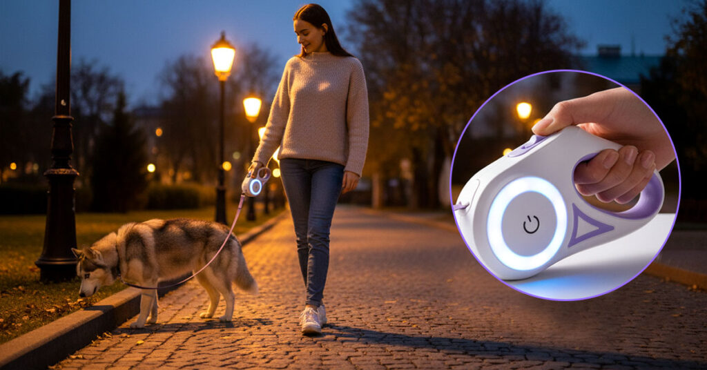 That TPE soft rubber lining makes a real difference when you’re out for more than a quick bathroom break. Your hand doesn’t cramp up or get sore spots, even when your dog decides tonight’s walk needs to be an extra-long exploration session. It’s the kind of comfort you don’t think about until you’ve used a hard plastic handle for 45 minutes straight.