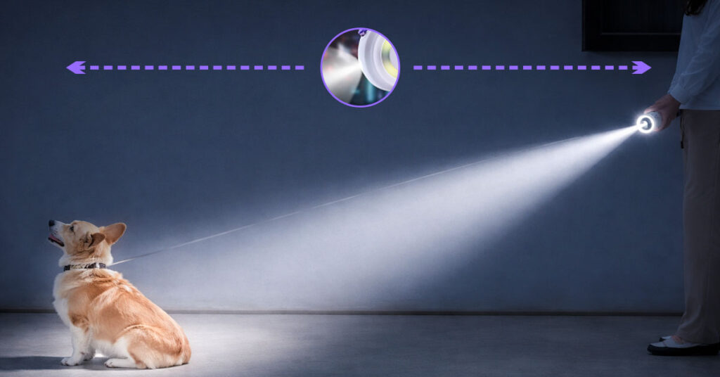 The 100-lumen spotlight reveals everything before your dog’s nose finds it—that suspicious puddle, the half-eaten pizza slice, the broken glass hiding in the grass. It’s bright enough to actually see details, not just create a dim glow that barely helps. You’ll know exactly what your dog is investigating instead of discovering it the hard way.