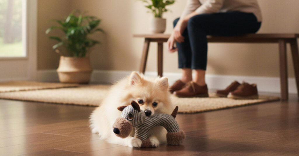 That anxious loop—whining, circling, searching for something to destroy—finally breaks. When dogs have the right companion to settle with, their pre-departure panic shifts into purposeful chewing. Instead of spiraling when keys jingle, they grab their companion and focus. The difference shows up immediately: calmer goodbyes, less destruction while you’re gone, and a dog who’s learned that being alone doesn’t mean being stressed. It’s a small shift that changes the entire dynamic of leaving home.