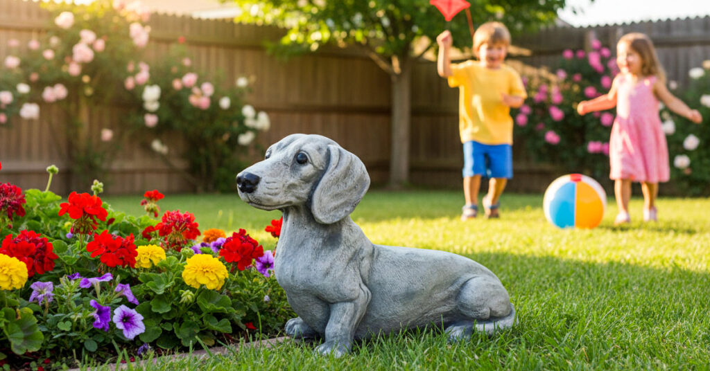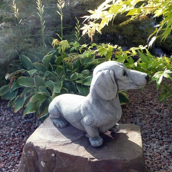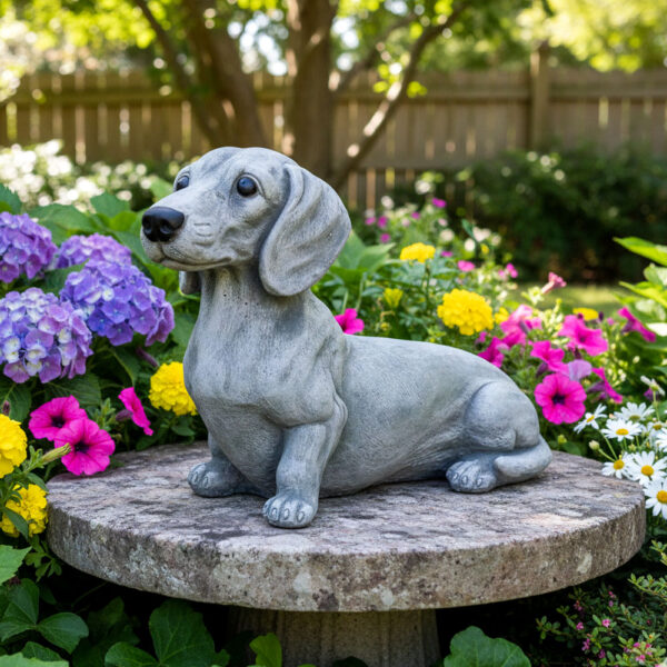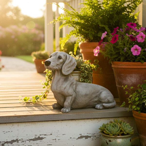 This isn’t just another garden ornament—it’s a personality piece. Positioned on a flat stone, nestled among hostas, or greeting visitors at the garden entrance, this resting dachshund transforms ordinary spaces into storytelling scenes. The relaxed pose and curious expression create instant warmth, turning generic landscaping into a garden that feels like it has a soul.