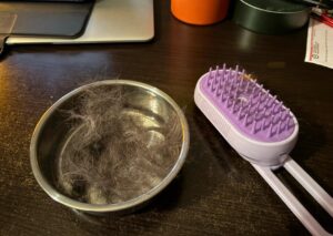 It’s a 2-in-1 grooming tool that combines a gentle nano-mist spray with a de-fur comb to loosen and remove loose fur, dirt, and dander—making grooming easier and more comfortable.