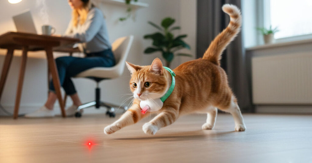 Finally, a solution for cats who demand attention at the most inconvenient times. This clever collar puts the laser right where it needs to be—always just ahead of your cat’s paws. Whether they’re sprinting across the living room or doing that adorable sideways hop, the beam stays perfectly positioned to keep them chasing. No more guilt about being too busy, and no more interruptions during your video calls. Your cat gets their playtime, and you get your hands back.