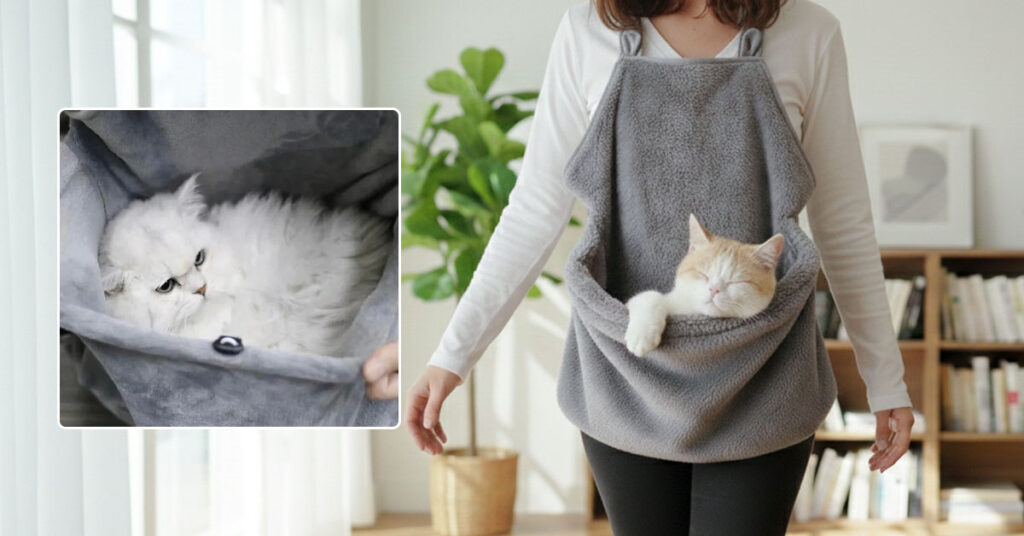 The apron-style straps distribute weight evenly across your shoulders and wrap securely around your body, so there’s zero chance of your cat slipping out or the carrier sliding off. The deep pouch design cradles your cat from all sides, preventing any wiggling escapes even if they get curious about something. You can bend down, reach up, or move around freely without worrying about your furry passenger taking an unexpected tumble.