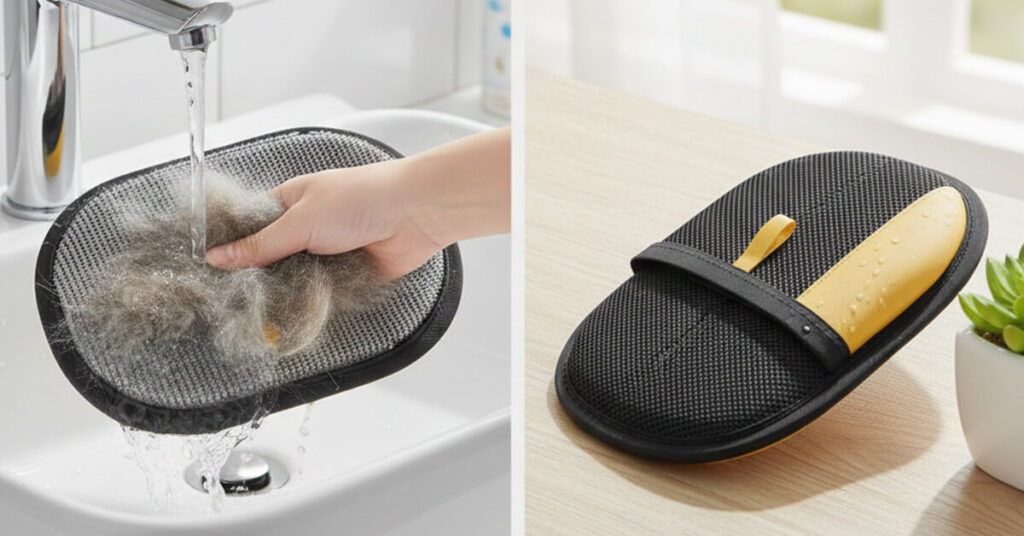 Super easy. Peel off the clumps of hair with your fingers and toss them in the trash. Then rinse the glove under warm running water while rubbing it gently. You’ll see any remaining hair wash away. Squeeze out excess water and let it air dry completely—usually takes a few hours. Once dry, the electrostatic properties are fully restored.