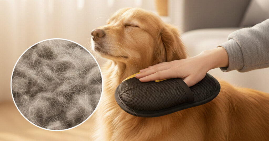 During heavy shedding season, use the glove daily or every other day. A quick 5-10 minute grooming session will catch most of the loose undercoat before it ends up on your floors and furniture. For lighter shedding periods, 2-3 times a week is usually enough to keep things under control.