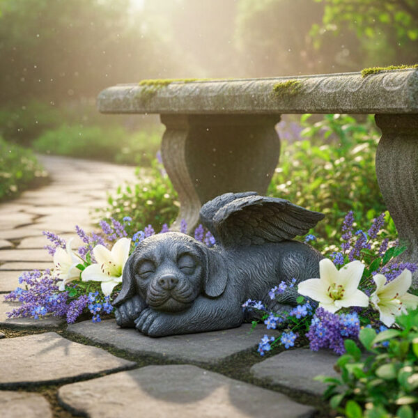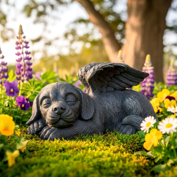 Placing this statue in your garden, patio, or favorite outdoor spot creates a tangible connection to the love that remains. The image of your pet resting peacefully under protective angel wings offers quiet reassurance during difficult moments. It becomes a place to pause, reflect, and feel close to them again—a gentle reminder that the bond you shared continues, even when they’re no longer physically here.