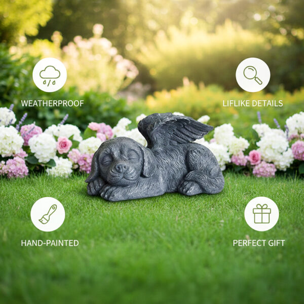Every curve of the sleeping puppy, every feather in the angel wings—these details are carefully sculpted to reflect the gentle spirit of a cherished pet. The soft, peaceful expression and tucked paws create a sense of calm that feels almost real, as if your furry friend is simply resting nearby. It’s these thoughtful touches that transform a statue into a true remembrance.