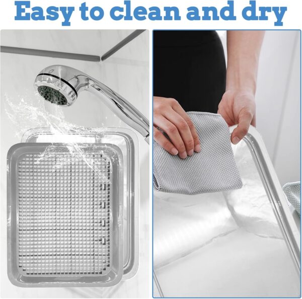 Some dogs treat toilet time like a full-body event — spinning, scratching, doing a little dance before they commit. The anti-slip pads gripping the bottom keep the tray locked in place no matter how dramatic the pre-pee ritual gets. The tray stays put, and so does everything inside it.