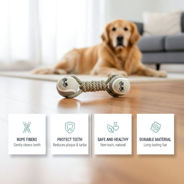 The advantage here is versatility. If your dog gets tired of fetch, you can switch to tug-of-war without grabbing a different toy. If they’re restless during your Zoom meetings, they can chew on it independently to self-soothe. The tennis ball texture keeps things familiar and appealing, which tends to hold dogs’ attention longer than random squeaky toys. That said, every dog is different—some need variety no matter what. But many owners find that having one durable, multi-purpose toy beats a bin full of destroyed single-use items.