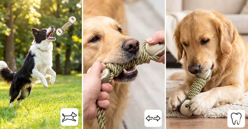 The advantage here is versatility. If your dog gets tired of fetch, you can switch to tug-of-war without grabbing a different toy. If they’re restless during your Zoom meetings, they can chew on it independently to self-soothe. The tennis ball texture keeps things familiar and appealing, which tends to hold dogs’ attention longer than random squeaky toys. That said, every dog is different—some need variety no matter what. But many owners find that having one durable, multi-purpose toy beats a bin full of destroyed single-use items.