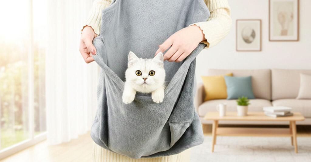 She sent me a link to something I’d never seen before—this fleece pouch thing that straps on like an apron. You put the kitten inside, against your chest, and your hands are free.